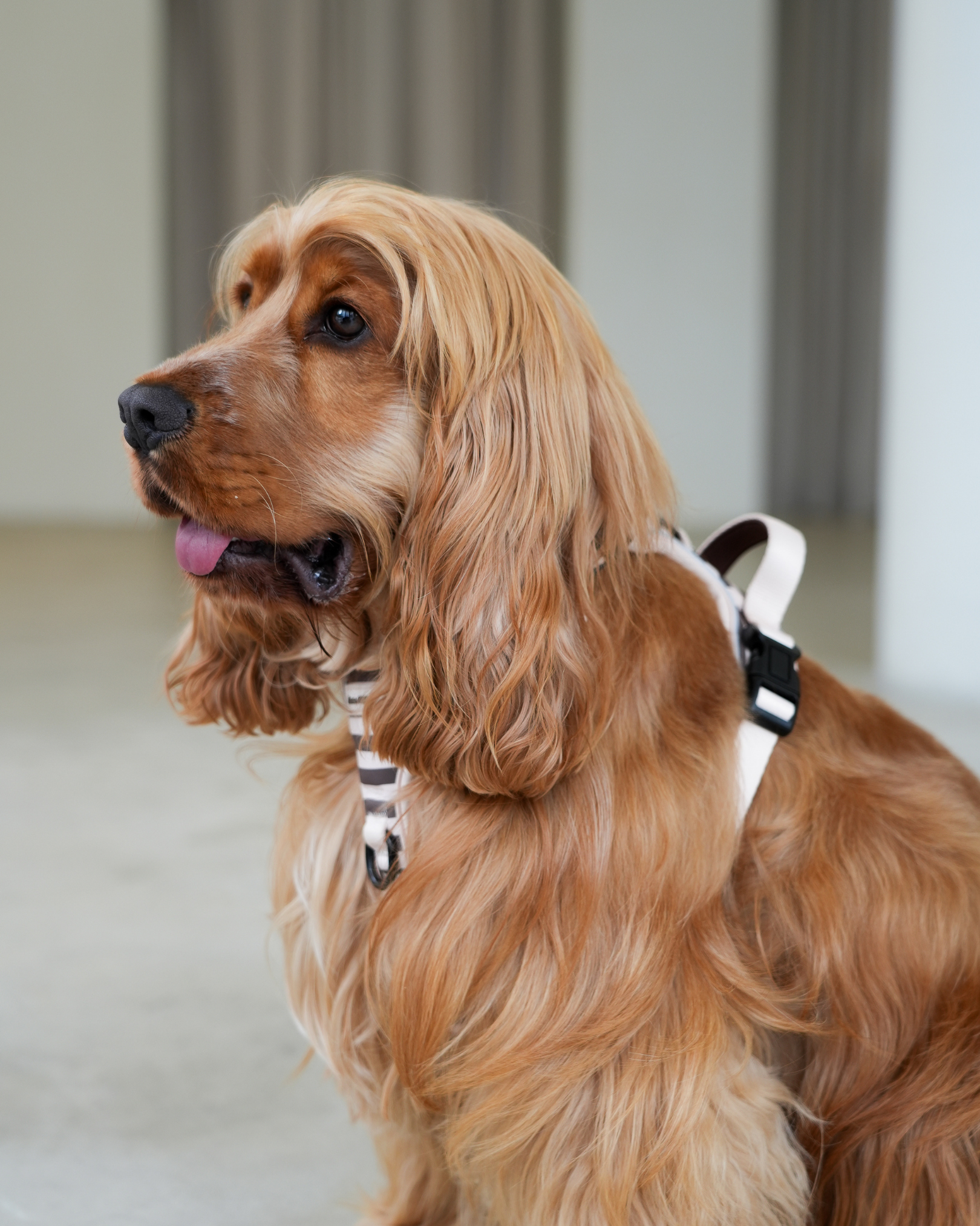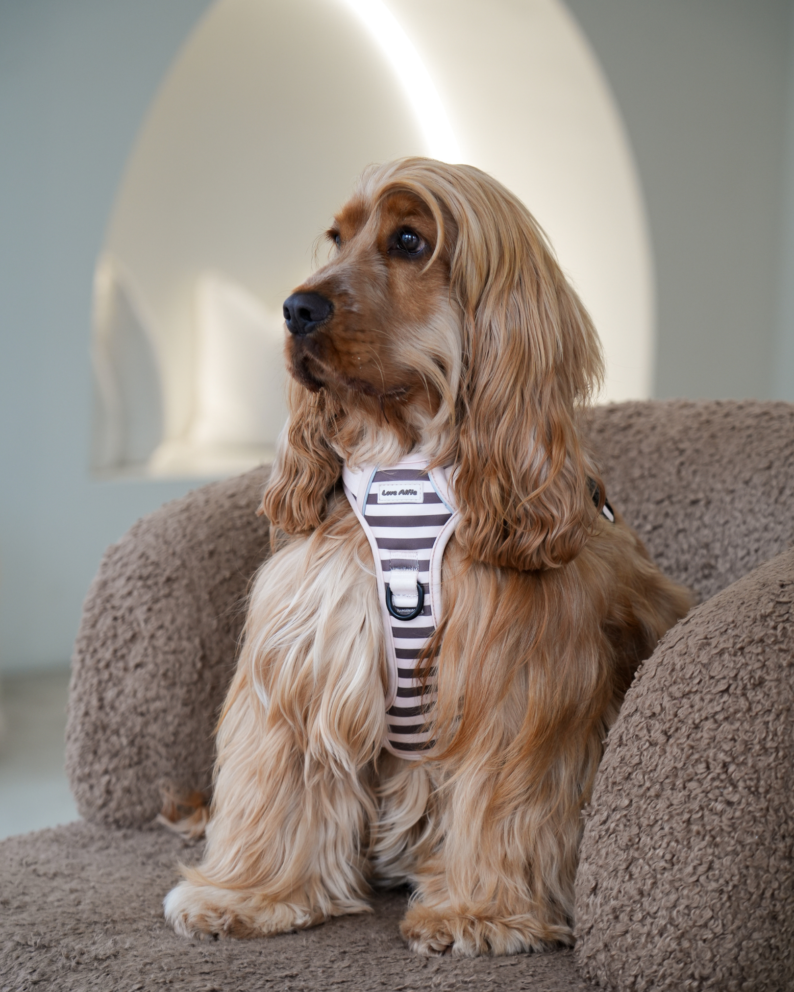 It offers more control and comfort without sacrificing style — designed in soft, earthy tones that sit naturally alongside a dog parent’s wardrobe.