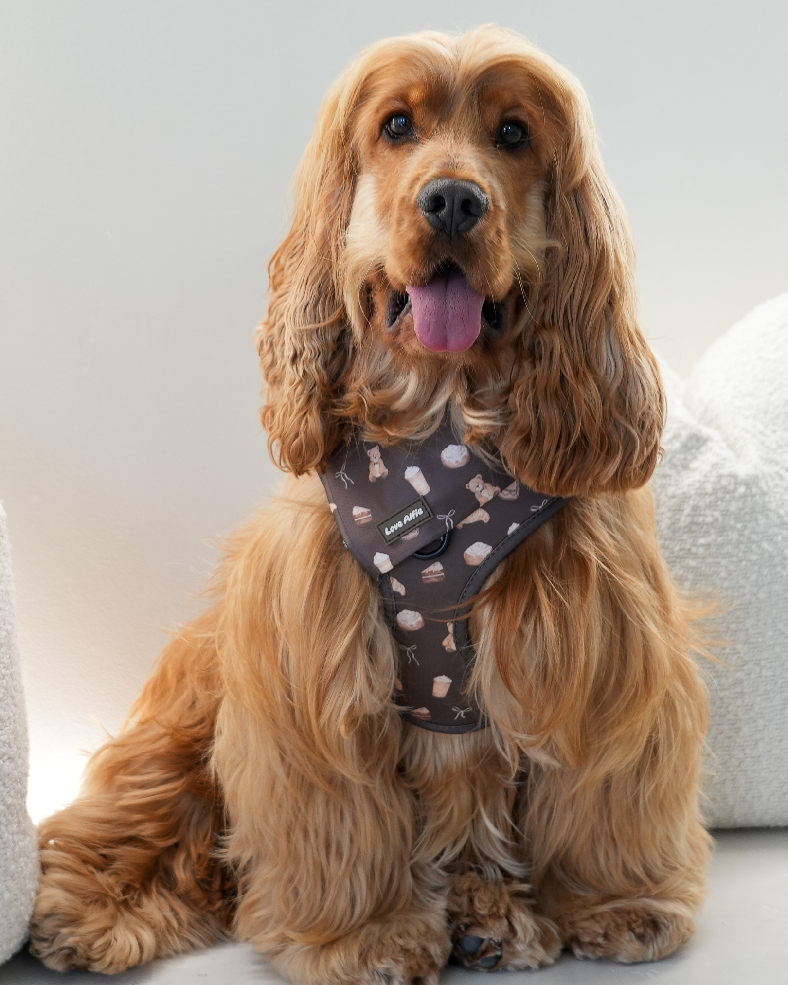 Sweet Treat came to life as a hand-painted watercolour, inspired by life with Alfie. Each motif was created to represent the little moments that make everyday dog life feel extra special. You’ll see croissants, coffee cups, teddy bears and bows — a nod to cosy mornings and time spent together. From brushstroke to final print, every detail was designed to feel soft, elevated, and timeless.